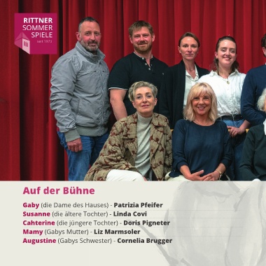 Auf der Bühne Gaby (die Dame des Hauses) - Patrizia Pfeifer Susanne (die ältere Tochter) - Linda Covi Cahterine (die jüngere Tochter) - Doris Pigneter Mamy (Gabys Mutter) - Liz Marmsoler Augustine (Gabys Schwester) - Cornelia Brugger