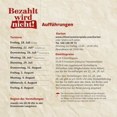 Freitag, 1. August nur für die Vorstellungen am 22., 24., 28. Juli.